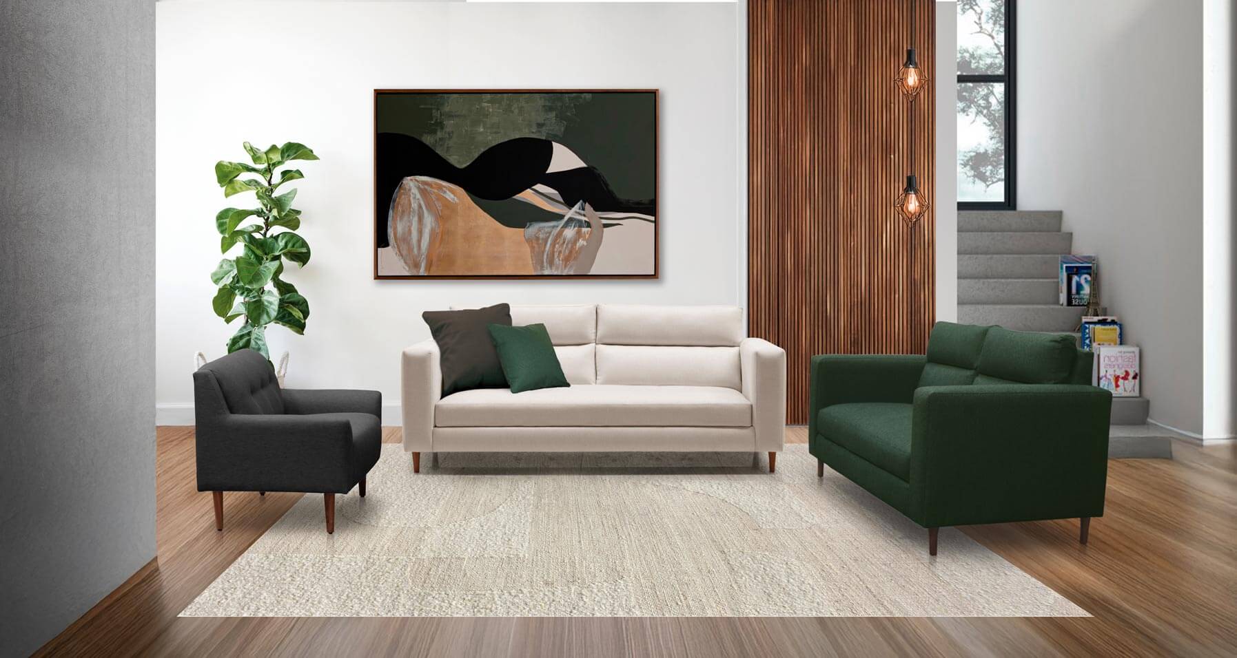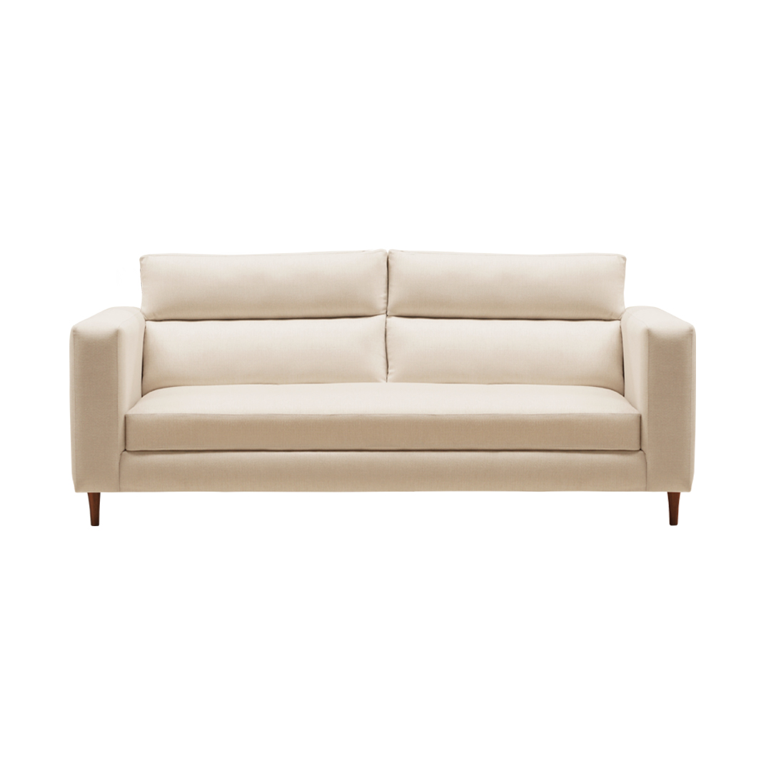 Love Seat Ferrara + Sofá Ferrara tapizados en tela Ronda Ivory y Ronda Blue.